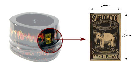 - マッチラベルのサイズは一般的に38mm×56mm前後が主流です。塗り箱やメガネケース、コースターなどには原寸で使用していますが、アクセサリーなどの小さいものには、マッチラベルを縮小して使用しています。