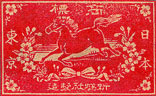 そのデザインは葉桜を描いた銅板一色刷りのものと、一輪桜と文字、馬を配したものであった。